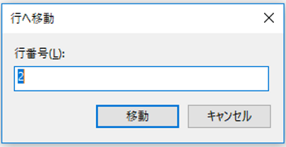 移動先の行番号を入力し、「移動」をクリックすると、カーソルが指定行に移動します。